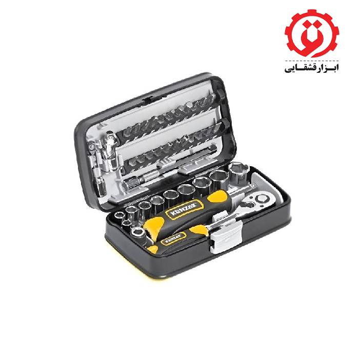 ابزار قشقایی | محصولات | ابزار دستی | جعبه بکس | جعبه بیت | جعبه بیت و بکس 38 پارچه 1/4 اینچ کنزاکس مدل 9438